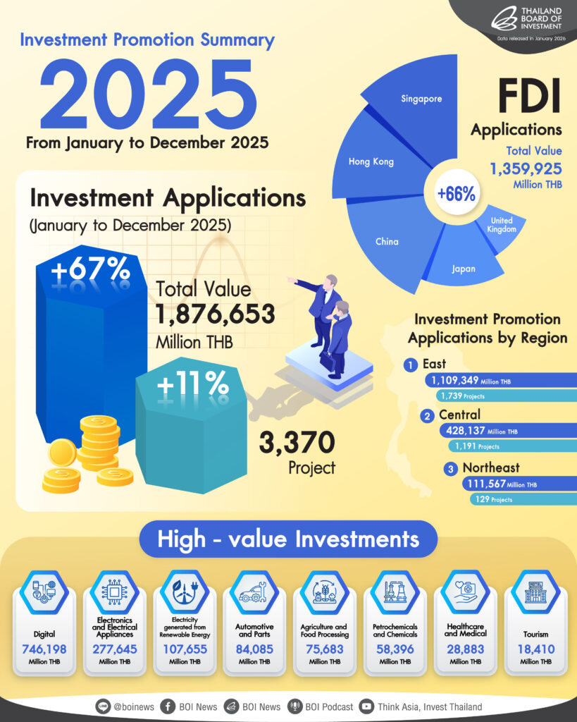 Thailand’s Investment Applications Reach New Highs in 2025, Fueled by Digital and Advanced Industries